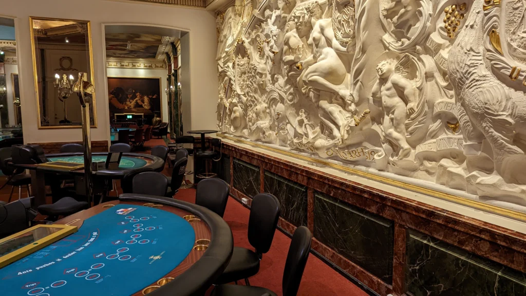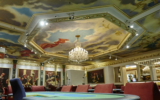Du kan også opleve den flotte udsmykning som stedet er beriget med. Den polske kunstner Andrzej Kowalczyk er manden bag værkerne der beskriver spillets historie fra mange verdensdele. De store malerier hænger og pryder den store spillesal.