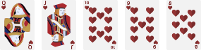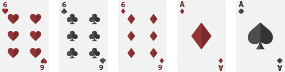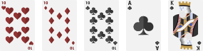 – Har en spiller en hånd af samme værdi som dealeren, afgør det næsthøjeste kort hvem der vinder (Es er højest)